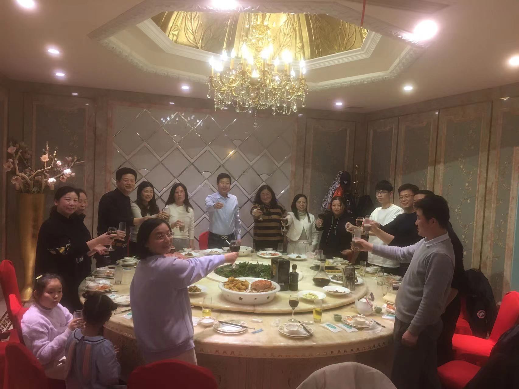 會(huì)議結(jié)束后在榮港海鮮城聚餐,大家一起舉杯暢飲。